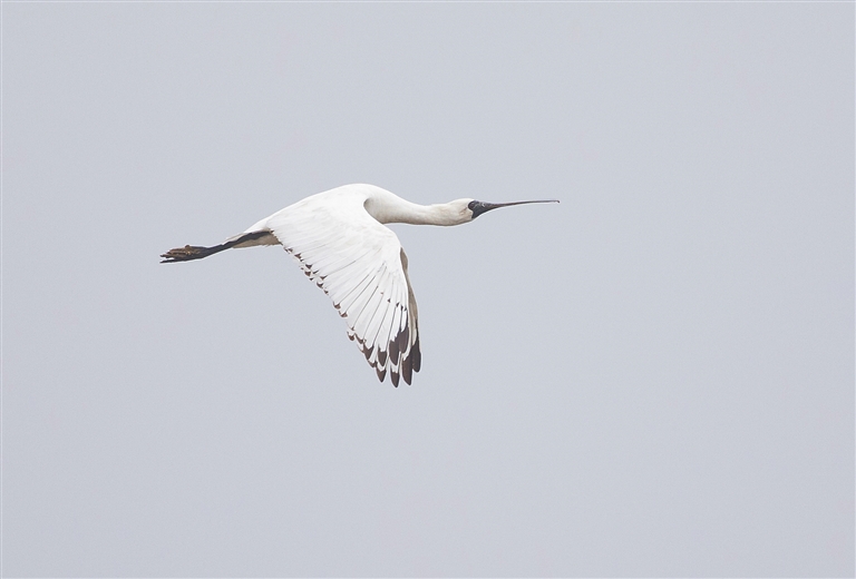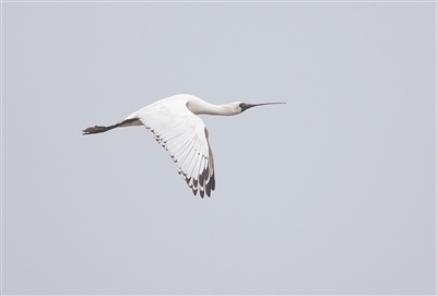 更令人惊喜的是,此次调查记录到的国家一级重点保护野生鸟类黑脸琵鹭数量突破百只,共发现145只,这是海南自2003年开展越冬水鸟调查以来记录黑脸琵鹭数量最多的一次。