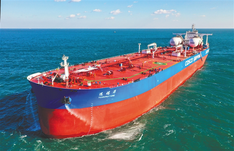 “远瑞洋”轮是大船集团依托国家科研项目,为中远海运能源量身打造的全球首艘LNG双燃料动力超大型原油船,它的成功交付标志着中远海运集团在大型油轮绿色、环保和节能技术应用中走在了世界前沿,也标志着中国船舶集团在大型清洁能源动力船技术领域取得突破。