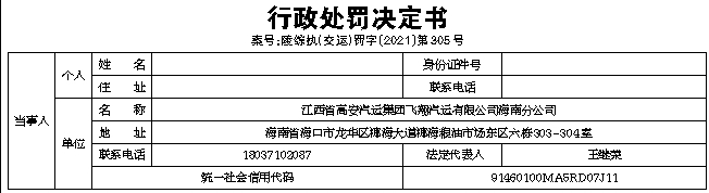 附:《行政处罚决定书》陵综执(交运)罚字〔2021〕第305号