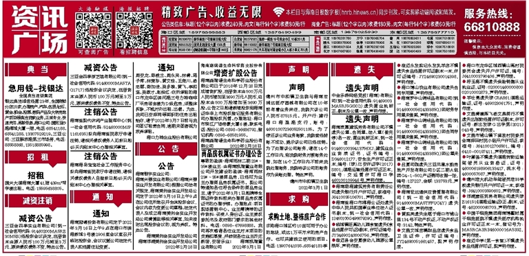 ●海南罗牛山调味品有限公司(统一社会信用代码:91460000562433385Q)因合同专用章未备案,声明作废。