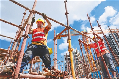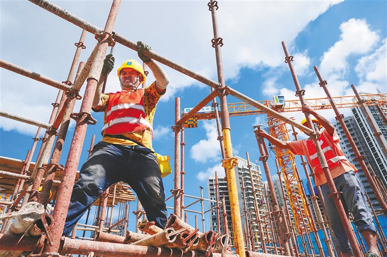 3月1日,在国家南繁作物表型研究设施项目工地,工人正在进行施工。