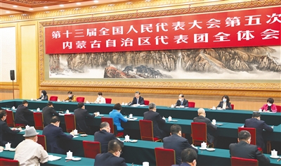 内蒙古代表团审议热烈,气氛活跃。张磊、郭艳玲、贾润安、王晓红、冯艳丽、赵会杰、史玉东等7位代表分别就完整准确全面贯彻新发展理念、加强草原生态建设、煤化工产业助力实现碳达峰碳中和、将铸牢中华民族共同体意识融入办学治校教书育人全过程、为实现高质量发展贡献航天力量、推进乡村振兴、振兴民族奶业等问题发言。习近平不时插话并记录。