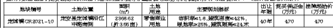 该地块土地权利清晰、安置补偿落实到位、地上附着物已完成清表、无法律经济纠纷、土地开发利用规划条件明确、符合土壤环境质量要求,地块周边可以满足施工建设所需的水、电供应,相关设备、机械可以进场施工,具备动工开发所必需的条件。二、宗地开发建设要求:(一)该宗地鼓励使用装配式方式建造。(二)竞得人取得该宗土地,须在地块内预留一条宽7 米的消防通道。(三)开发建设期限:竞得人应自《国有建设用地使用权出让合同》签订之日起3个月内动工,动工之日起18个月内竣工,竣工之日视为投产。竞得人未按出让合同约定时间动工及竣工的,每延期一日,应向出让人支付土地出让价款总额1‰的违约金。超出出让合同约定动工日期前满一年未动工开发的,按土地出让价款的20%征收土地闲置费;满二年未开发的,无偿收回土地使用权。(四)竞得人取得土地使用权后,应严格按照规划要求建设。涉及水务、绿化、市容、卫生、环境保护、消防安全、交通管理等的设计施工,应符合国家和海南省的有关管理规定。(五)成交价款不包括有关税费,竞得人须按照规定到县税务部门缴纳契税、印花税等税费。三、竞买事项:(一)竞买人资格范围:中华人民共和国境内外的自然人、法人或其他组织均可申请参加竞买(注:失信被执行人不得参加本次竞买)。本次挂牌出让不接受联合申请,属境外的企业或其他组织的,须提供境外公证部门的公证书及法律规定的其他文件。具有下列行为竞买人不得参加本次土地出让挂牌:1.在定安县范围有拖欠土地出让金行为,并未及时改正的;2.在定安县范围有因自身原因造成闲置土地,并未及时纠正的;3.根据《海南省自然资源和规划厅关于加强土地供应竞买人资格审核的通知》(琼自然资函〔2020〕1753号)文件规定,原非法占地、违法建设行为人。(二)本次国有建设用地使用权挂牌出让设有底价,按照价高且不低于底价者得的原则确定竞得人。(三)竞买咨询及报名期限:本次挂牌出让的详细资料和具体要求,见挂牌出让文件,有意参加竞买者可到定安县国土资源局218办公室或海南省公共资源交易服务中心一楼受理大厅3号窗口查询和获取挂牌出让手册,并按挂牌手册的具体要求报名参加竞买。报名期限:2022年3月10日至2022年4月6日(以竞买保证金实际到账为准)。(四)竞买保证金:申请人应在2022年4月6日16:00前将竞买保证金存入指定账户(以到账为准)。(五)资格确认:经审查,申请人按规定交纳竞买保证金,具备申请条件的,我局将在2022年4月6日17:00前确认其竞买资格。(六)挂牌报价时间及地点:挂牌起始时间:2022年3月28日8:30。挂牌截止时间:2022年4月8日9:30。挂牌地点:海南省政府会展楼二楼省公共资源交易服务中心土地交易厅。(七)本次竞买活动只接受书面报价,不接受电话、邮寄、电子邮件、口头等其他方式报价。四、其他事项:(一)竞得人须在签订《成交确认书》之日起10个工作日内与定安县自然资源和规划局签订《国有建设用地使用权出让合同》。(二)申请人竞得土地后,拟成立新公司进行开发建设的,竞得人在新公司中出资比例不得低于50%(不含50%)。(三)挂牌时间截止时,有竞买人表示愿意继续竞价,转入现场竞价,通过现场竞价确定竞得人。(四)此次挂牌服务费由挂牌中介服务机构按照国家法律规定的收费标准,向竞得人按照成交金额收取。(五)挂牌出让的地块按现状条件出让。本次挂牌事项如有变更,以变更公告为准。(六)本公告未尽事宜详见《定安县国有建设用地使用权挂牌出让手册》,挂牌出让手册所载内容为本公告的组成部分。五、咨询方式:咨询电话:黄先生:0898-63822430 欧阳先生:0898-68529777;查询网址:http://www.landchina.com;http://zw.hainan.gov.cn/ggzy/; http://Ir.hainan.gov.cn/。