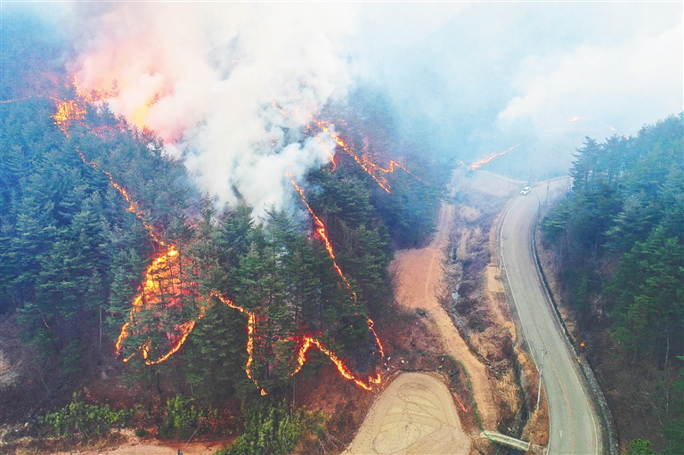 韩国东部多地连日来发生山林火灾,火势至今未获控制,向周边地区蔓延。韩国消防厅5日首次在全国范围发布最高级别火险预警,6日仍有44架直升机和4000人参与灭火。