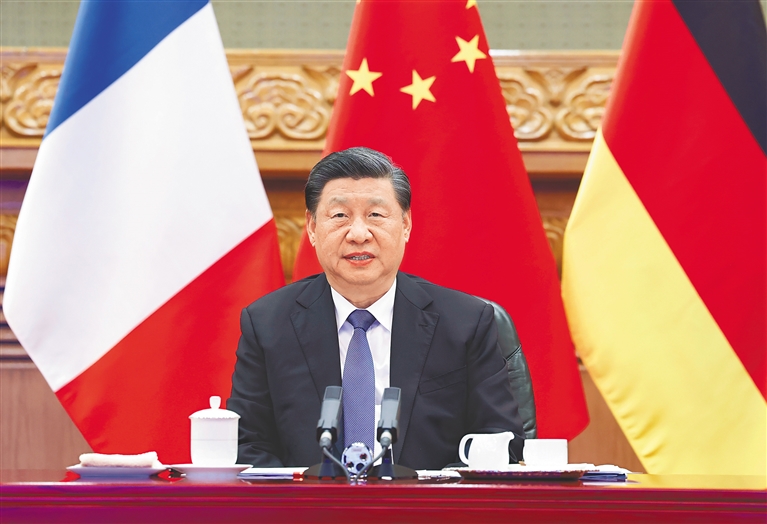 新华社北京3月8日电 国家主席习近平3月8日下午在北京同法国总统马克龙、德国总理朔尔茨举行视频峰会。