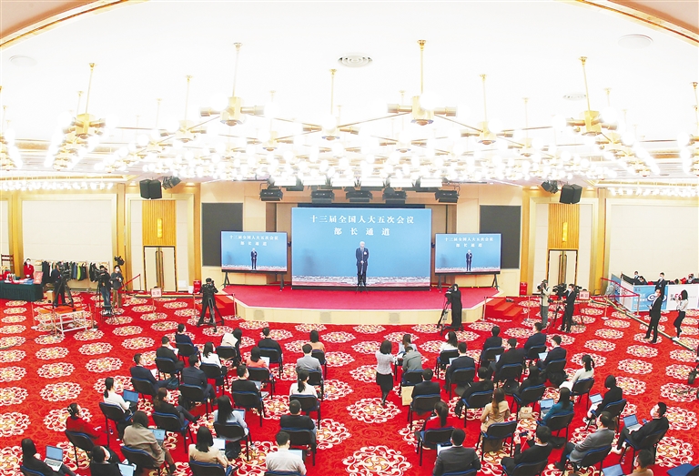 3月8日,第十三届全国人民代表大会第五次会议举行第二场“部长通道”采访活动。(本版照片均由新华社发)