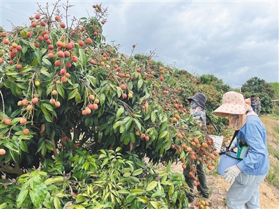 3月7日,海南日报记者在乐东黎族自治县万冲镇一处荔枝园看到,基地里的荔枝熟了。荔枝基地管理员介绍,这是新品种荔枝,名叫桂花香。