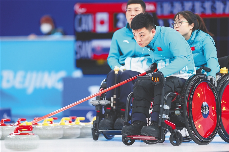轮椅冰壶比赛继续在“冰立方”举行,中国队以10:2战胜美国队,取得四连胜。目前,中国队4胜2负与斯洛伐克队并列第二,瑞典队5胜1负暂居第一。9日,中国队将迎来一日双赛,对手分别是斯洛伐克和挪威队。