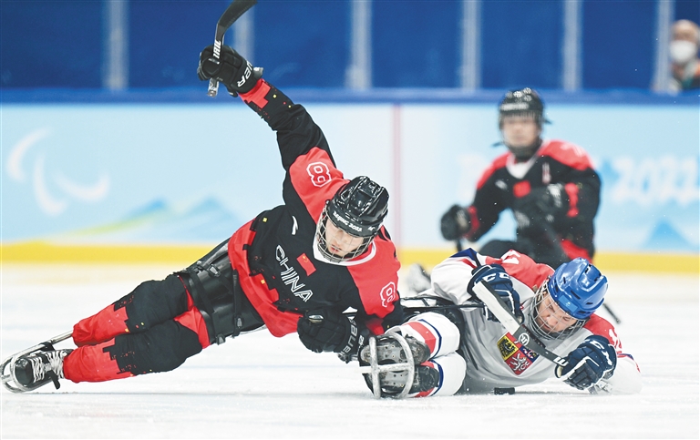 残奥冰球赛场,中国队和捷克队的胜者将晋级四强。前两局过后中国队2:1领先,第三局中国队再进一球后有所松懈,捷克队由瓦茨拉夫·赫奇科和诺米罗斯拉夫·诺沃特尼连续进球将比分扳平。在距离比赛结束不足两分钟时,汪之栋接申翼风助攻打入制胜球,帮助东道主闯入半决赛。中国队半决赛的对手将是美国队。