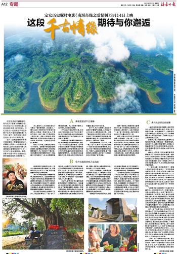“《南溟奇缘之爱情树》不仅是定安丰富历史人文和田园风光的一次集中展现,也是让全国观众深入、全面了解定安的一次难得契机。”该负责人表示,影片在全国院线上映,将为定安搭建起更为广阔的宣传平台,定安将牢牢把握此次机遇,做好定安历史人文和旅游资源推介。据悉,结合电影预热宣传,皇坡村已在爱情树等影片拍摄地布置好打卡点,文笔峰景区也将推出门票优惠政策吸引游客前来。