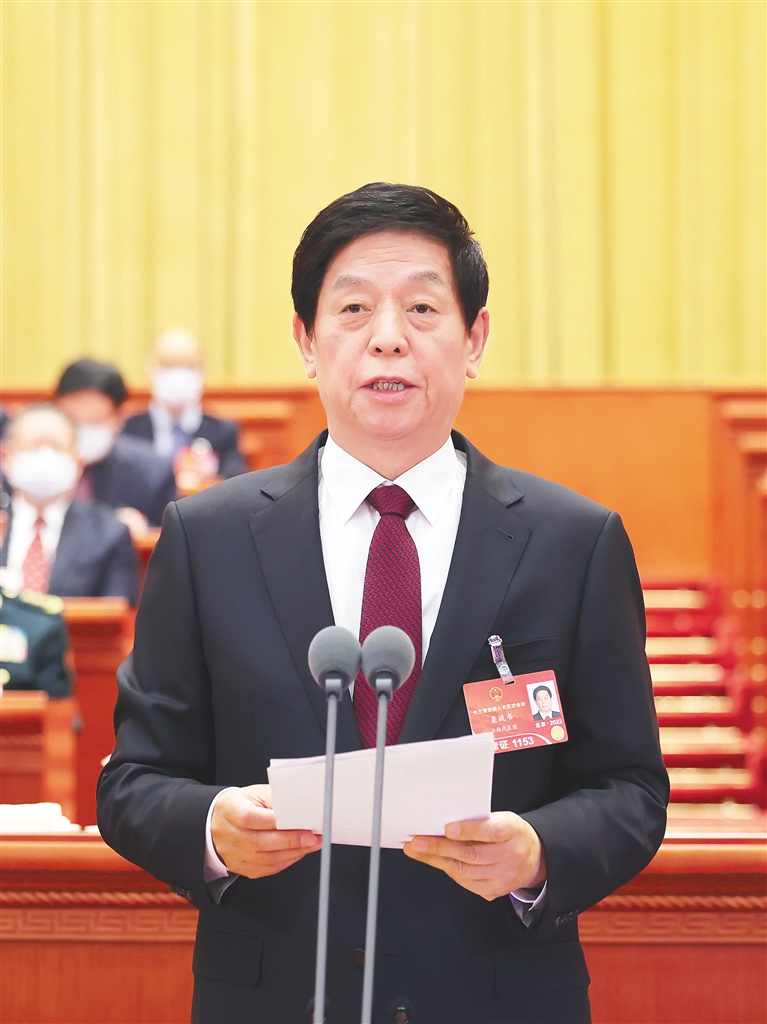 栗战书说,今年是党和国家事业发展进程中十分重要的一年。要深入贯彻落实中央人大工作会议精神,深刻认识人民代表大会制度在国家制度和国家治理体系中的新使命新任务,坚持党的全面领导,全面实施宪法,加快完善中国特色社会主义法律体系,依法监督“一府一委两院”工作,发展全过程人民民主,保证人民当家作主,全面提升人大工作质量和水平,以实际行动迎接党的二十大胜利召开。(讲话全文另发)