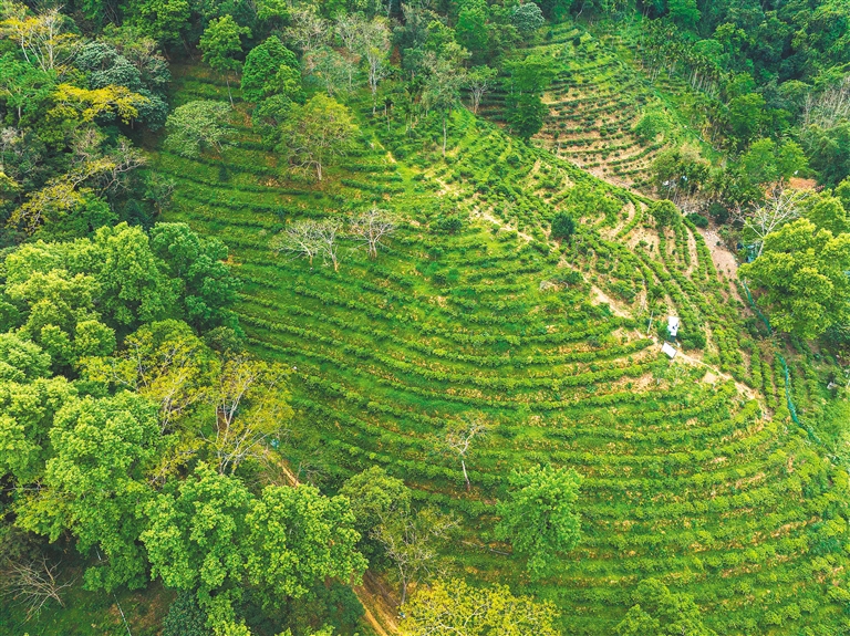 尽管眼下茶树长势正旺,茶园里却未见茶农施肥、除草的身影。“我们让茶树自然生长,不打农药,不施化肥,只在适当的时候采用绿色技术进行病虫害防控,这样产出的茶才是原生态的。”在五指山市水满乡茶农王桂珍看来,害虫自有天敌,杂草也应尽量放任其生长,多种生物构成完整的生物链后,茶园自然能实现生态平衡。