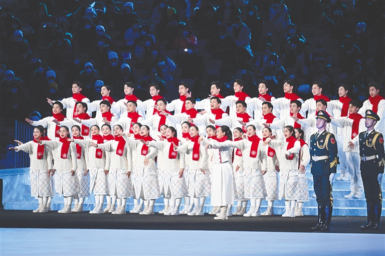 2022年3月4日晚,北京冬残奥会开幕式上,中国残疾人艺术团团长邰丽华带领数十名残疾人表演者用手语“唱”国歌。