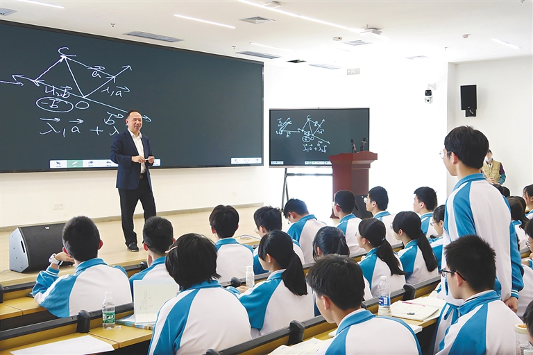 当天下午的两节高一年级数学课,分别由海南中学校长王宏、海南中学数学教研组组长屈韬授课,他们用不同的教学风格和方法对相同的学科章节内容进行教学。