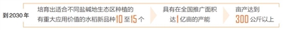 该中心实行“总部、研究中心、区域分中心和试验站/基地”的模式进行建设,在地域上覆盖全国所有典型盐碱地生态区,研究领域涵盖种质资源、生物技术、遗传育种、作物栽培、土壤肥料、农业生态、农业信息和农业机械等学科方向。在品种研发方面,目标是到2030年培育出适合不同盐碱地生态区种植的有重大应用价值的水稻新品种10至15个,具有在全国推广面积达1亿亩的产能,亩产达到300公斤以上。