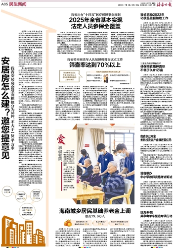 海南城乡居民基础养老金上调