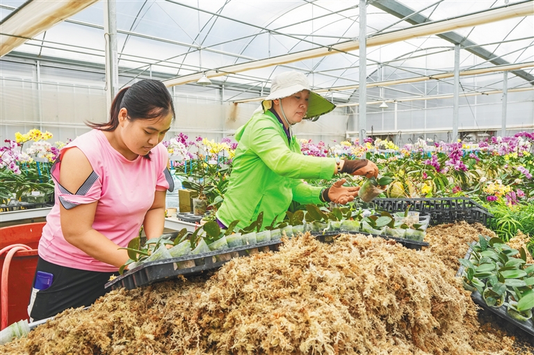 3月18日,工作人员在三亚市林业科学研究院国家热带兰花种质资源库给兰花种苗换杯。该研究院开展热带兰花种质资源的收集、保存、鉴定、评价与创新利用等研究工作,并且注重挖掘优异种质资源,培育新品种,进行产业化开发利用。本报记者 武威 摄