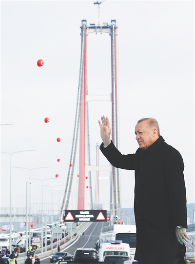 3月18日,土耳其总统埃尔多安在恰纳卡莱出席土耳其1915恰纳卡莱大桥通车仪式。