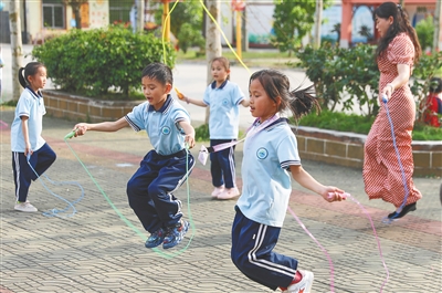 “为充分激发孩子们进行体育锻炼的兴趣,琼中各中小学引进、开发出不少新鲜有趣的体育运动项目,确保学生通过体育锻炼掌握2项至3项运动技能,形成‘一校一品’‘一校多品’的校园特色。”敖林注意到,随着体育课的“花样”多了起来,越来越多的“小胖墩”“小眼镜”也跟着“动”了起来。
