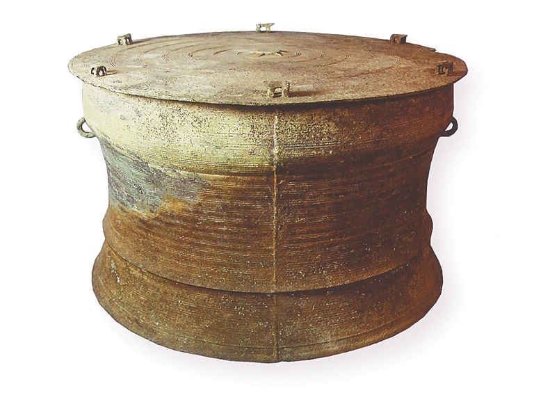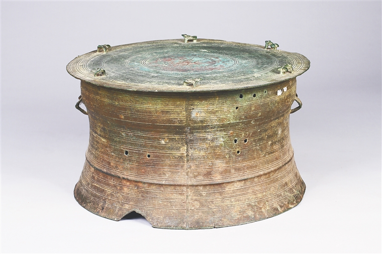 从现有的考古资料来看,海南岛并未发现早期的冶铜遗址,那么这些器形硕大、保存较好的铜鼓由何而来呢?《后汉书·马援传》记载:“援好骑,善别名马,于交阯(亦称交趾)得骆越铜鼓”,说的是伏波将军马援曾在越南得到过骆越族群的铜鼓。《后汉书·光武帝纪》载有东汉初年交趾反叛,光武帝刘秀曾遣伏波将军马援率军进军岭南平乱。另外海南出土过不少军用炊具铜釜,有些学者以此为依据,认为这些铜鼓和铜釜是当年马援军中用器或马援在交趾缴获之物。