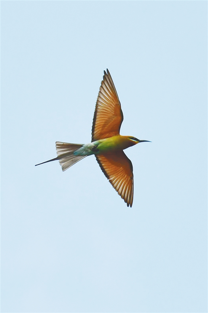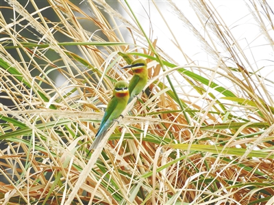 监测数据显示,去年海口五源河监测到蜂虎数量达72只,创历史新高。其中栗喉蜂虎70只,蓝喉蜂虎2只,相比于2018年的26只增长了两倍多,它们也成为五源河国家湿地公园的一道独特风景。