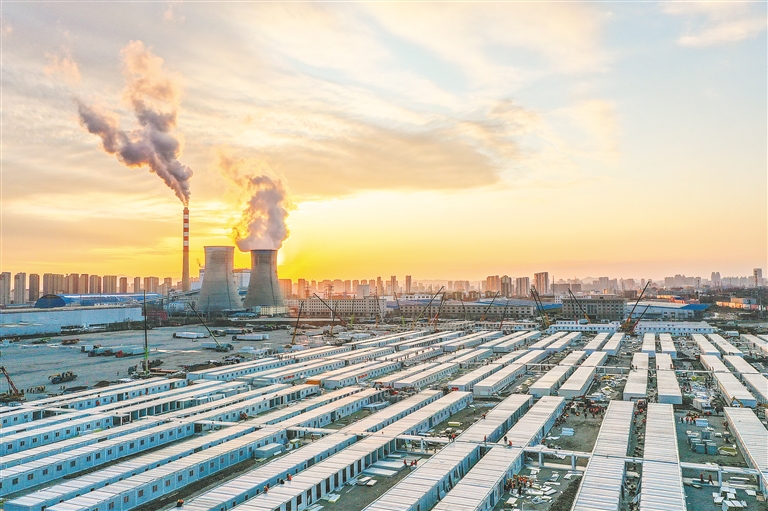 图为3月20日傍晚拍摄的吉林市高新南区隔离方舱建设现场。新华社发