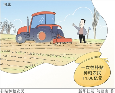 新华社石家庄3月21日电 (记者王昆)记者从河北省财政厅了解到,为应对农资市场价格上涨形势,保障种粮农民合理收益,河北省将通过“一卡(折)通”方式,把一次性补贴11.06亿元发放到实际种粮农民手中。