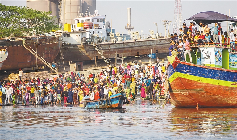 3月20日,人们聚集在孟加拉国纳拉扬甘杰的事故现场。