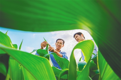 在南繁育种基地,科研人员将帐篷扎在试验田旁,迎着晨光察看秧苗长势,并在笔记本上记下一连串数据;
