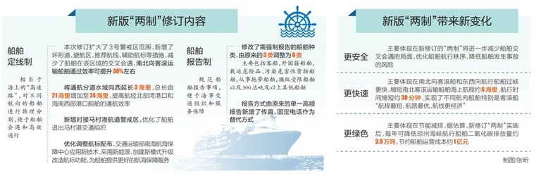 本报海口3月23日讯 (记者陈雪怡 通讯员石俊 吕东星)海南日报记者从省新闻办3月23日举行的新闻发布会上获悉,新修订的《琼州海峡船舶定线制》和《琼州海峡船舶报告制》(以下简称“两制”)将于4月1日正式实施。本次修订对“两制”的航路设置、航行规则等方面进行了全面优化,将有助于进一步规范琼州海峡海域船舶的航行秩序,提升通航效率,打造安全、畅通、高效、绿色的海上运输通道,释放琼州海峡“海上高速路”的黄金效益,服务海南自由贸易港建设。