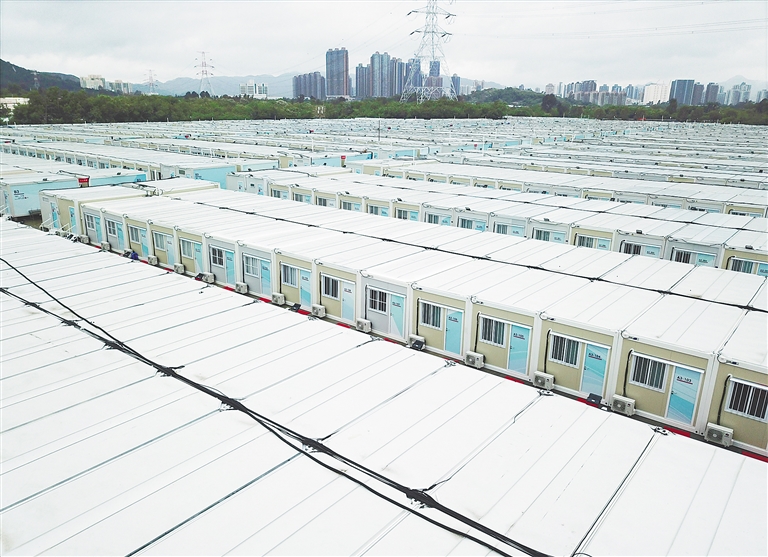 中央第一阶段援建香港的6处方舱目前已全部交付,共提供约2万张床位。其中,青衣方舱自2月22日开工,于2月28日正式完工,率先于3月1日交付使用。随后,在不到一个月的时间内,新田、港珠澳大桥香港口岸、粉岭、洪水桥等项目陆续投入服务,大大缓解香港医疗系统压力,为抗疫提供有力支援。