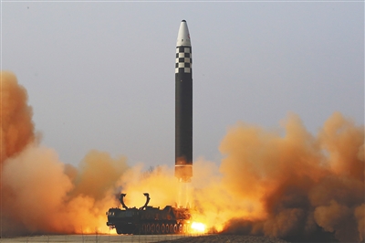 据朝中社25日报道,在朝鲜劳动党总书记金正恩的亲自指导下,朝鲜24日成功进行了“火星-17”型洲际弹道导弹试射。新华社/朝中社