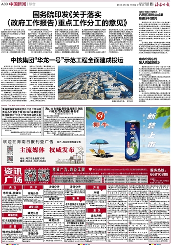 国务院印发《关于落实〈政府工作报告〉重点工作分工的意见》