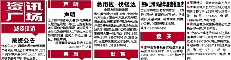 ●谢燕珊(于2022年3月)遗失居民身份证,证号:460102199006080027,特此声明。