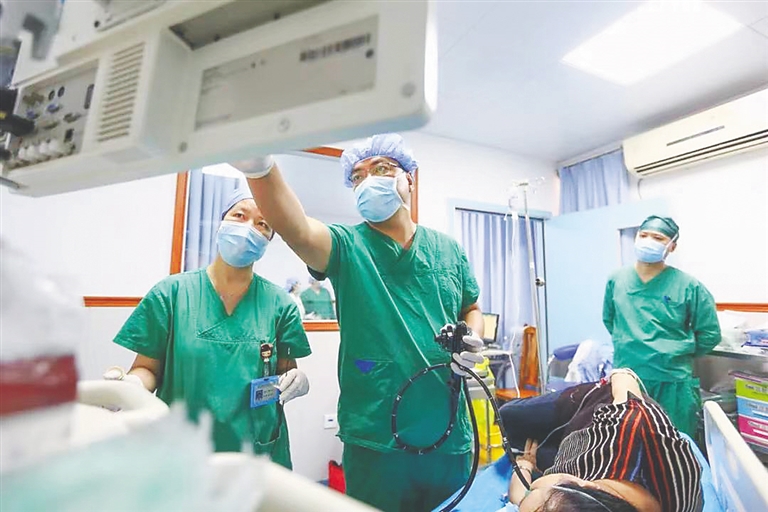 今年是曾俊涛来到三亚中心医院工作的第7年。他至今还记得,刚来时科室只有35张床,只能做胃镜、肠镜检查和一些简单的手术。作为该院消化内科的负责人,曾俊涛带领团队成员积极学习国内外前瞻理念和先进技术,并学以致用,不断提升医疗质量水平。