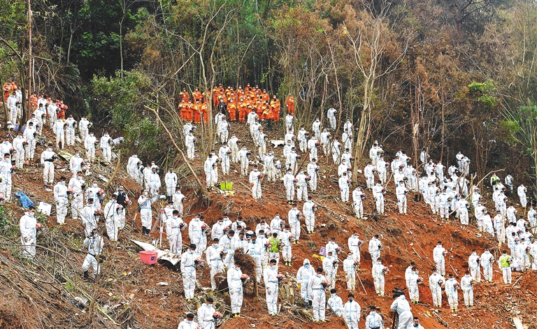 目前,指挥部仍在全力组织开展飞机残骸、遗骸遗物和各类物证资料的搜寻工作,继续做好各项善后处置工作,同步开展事故调查。
