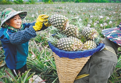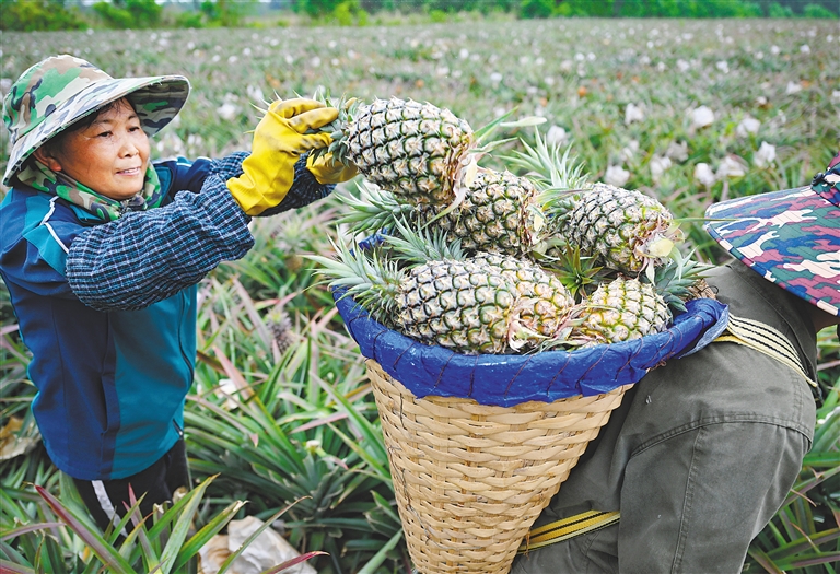 时值春日,在祖国南端的海南文昌市农田里,地瓜、凤梨迎来丰收,人们忙着采摘、挑拣、装箱,田间地头一片繁忙景象。