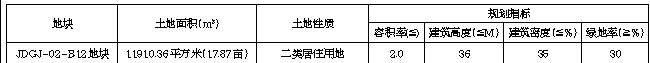 根据海口市江东新区控规成果,江东新区JDGJ-02-B12地块的规划情况详见下表: