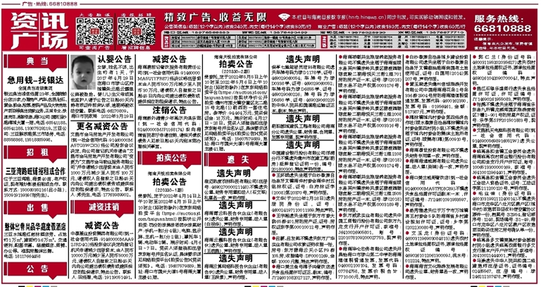 海南云算网络科技合伙企业(有限合伙)遗失公章、财务专用章、法人章(王洪景),声明作废。
