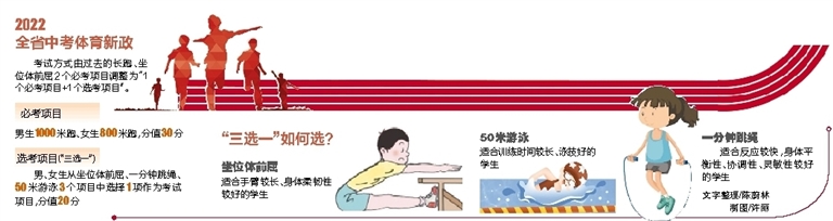 “以前都是必考项目,埋头苦练就行了。如今是‘三选一’,反而不知道该怎么选了。”今年中考体育科目考试方案公布后,引发众多初中生和家长的关注。