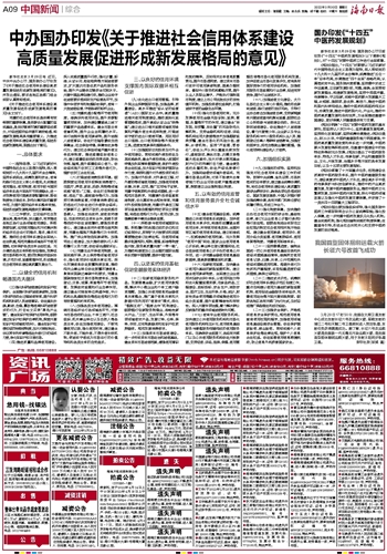 中办国办印发《关于推进社会信用体系建设 高质量发展促进形成新发展格局的意见》