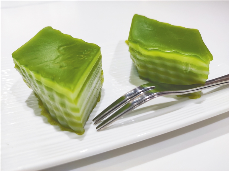 斑斓,在这里不是形容词,而是一种调味料,正是它给糕点赋予了“灵魂”。斑斓带有浓郁的异域色彩和热带风情,它背后的文化底色则是来自东南亚的香料文化,其中更有海南华侨群体的推波助澜。