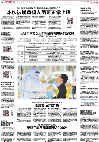 海口确诊病例1封控区、管控区核酸检测结果均为阴性