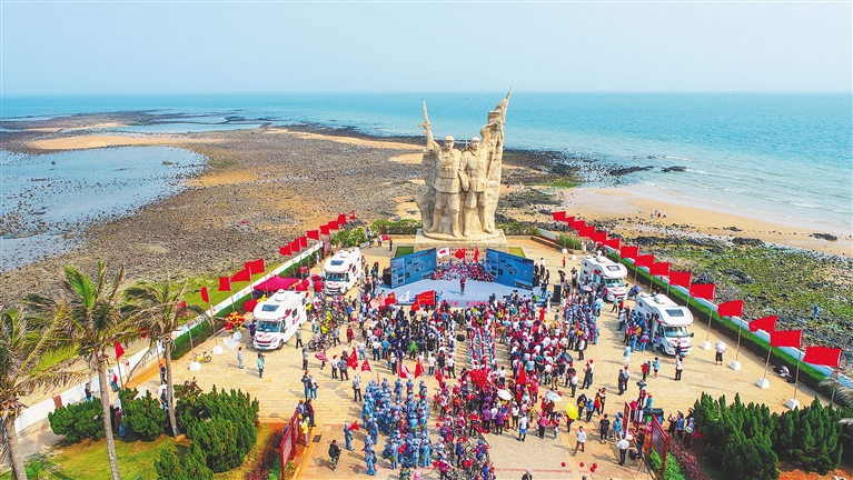 市民游客在临高角海南解放公园参与红色主题活动。本报记者 张茂 摄