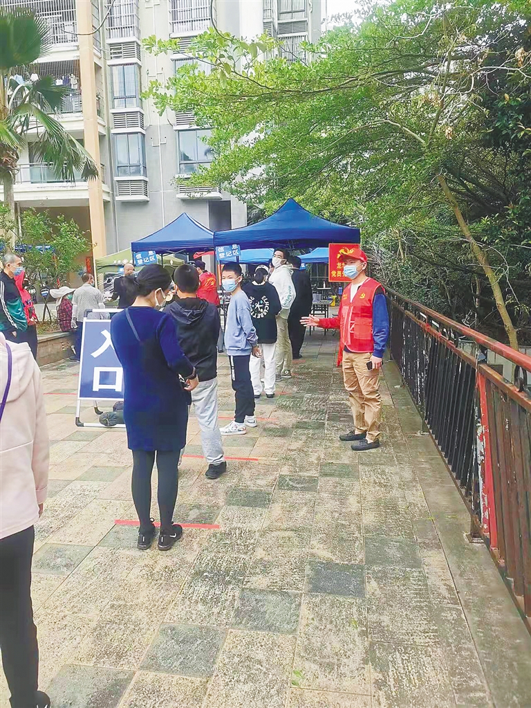 以担当表真意。交行海南省分行行政部的杨作云是一名党员,也是率先报名参加志愿服务的交行员工。4月4日,海口市各地区开始组织核酸检测,杨作云积极响应龙华区政府防疫志愿服务工作,利用清明假期下沉至本社区参与防疫工作,协助社区工作人员维持核酸检测秩序、为老年人进行核酸检测登记、开辟绿色通道帮助老年人及孕妇等需要关爱的群体。眼看天色渐暗,他不忍看到社区工作人员继续高强度工作,主动承担测量体温、搬运防疫物资、摸排楼道居民情况等等,一件件细致而繁重的志愿工作串连起了他的一天。