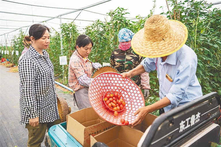 近日,海南农垦南繁旗下种植基地组织人员加班加点,采摘新鲜蔬菜、清洗打包,并装车运往三亚市吉阳区、天涯区以及三亚市救助站、福利院等地,保障三亚的果蔬供应(图①②③)。