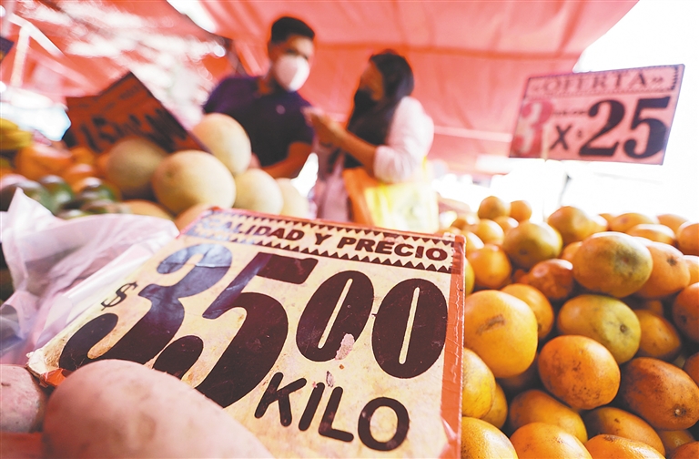 4月8日,顾客在墨西哥首都墨西哥城的一家市场内选购蔬果。新华社/路透