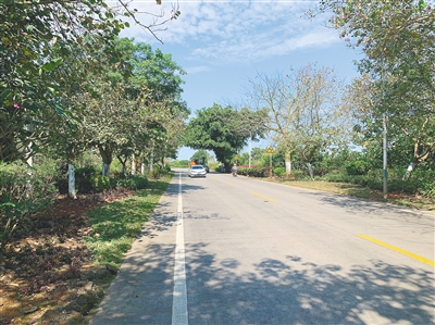 海口市地方公路管理站工作人员介绍,浮美线公路于2013年列入海口市第一批县道砂土路改建工程,2017年改建完成,道路全线按三级公路标准建设。在建设的过程中,道路景观突出“近自然”的原则,因地制宜、就地取材,大量采用榕树、野菠萝、散尾葵、火山石等本土植物与石材,不仅节约成本,而且自然生态。