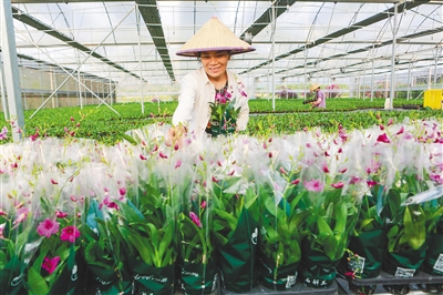 在东方上彩热带花卉产业园,脱贫户入园务工。 本报记者 陈元才 摄