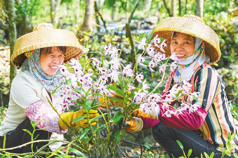在海口市秀英区石山镇施茶村,农户在忙着管护石斛。 本报记者 李天平 通讯员 宁远 图/文